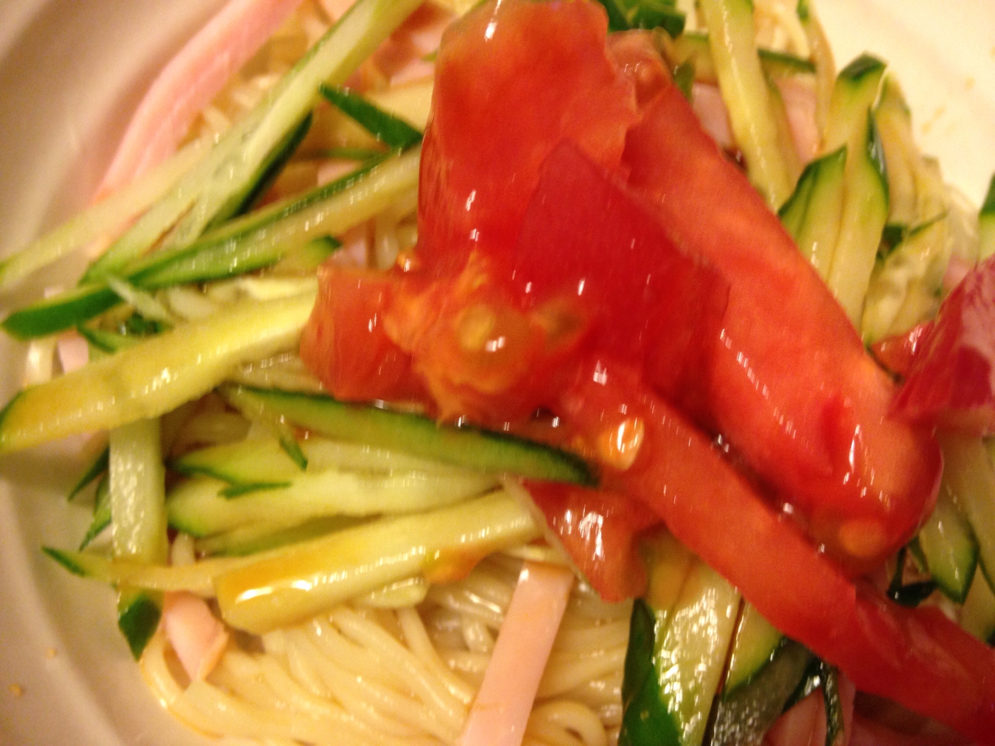 きゅうりとハムとトマトのさっぱり冷麦 レシピ 作り方 By Tommeg12 楽天レシピ