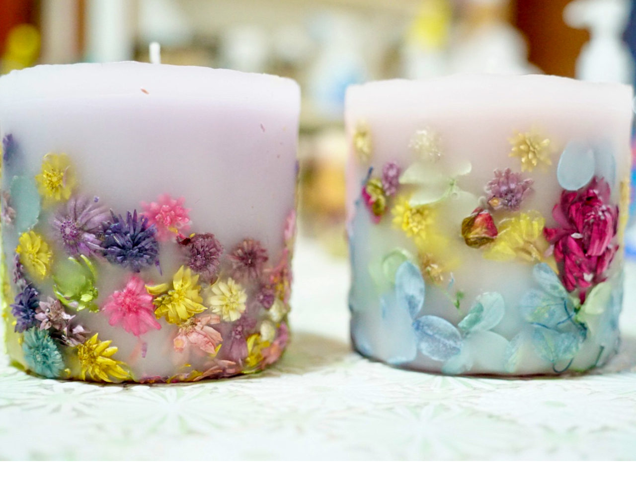 更新 簡単! かわいいボタニカルキャンドルの作り方 ほのかな灯りが心を落ち着かせてくれるキャンドル。 今回はドライフラワーを使った基本のキャンドルの作り方をお届けします。 クリスマスカラーに仕上げれば、これからの季節の ボタニカルキャンドルの「 Botanical」は英語で「植物」のこと。 ベースになるキャンドルに、ドライフラワーやプリザーブドフラワーなどの花草や果実をワックスに溶かし込んだり重ねたりなど、 様々な植物を装飾して閉じ込めたもの を言います。